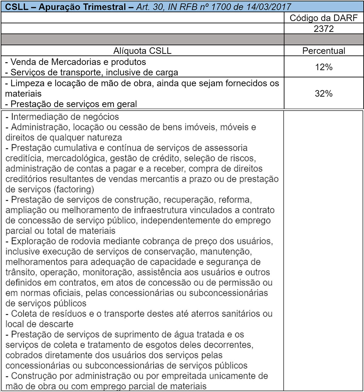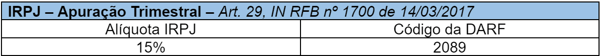 As pessoas jurídicas exclusivamente prestadoras de serviços em geral, mencionadas nas alíneas "l", "m", "n", "p", "q" e "s", cuja receita bruta anual seja de até R$ 120.000,00 (cento e vinte mil reais), poderão utilizar, na determinação da parcela da base de cálculo do IRPJ, o percentual de 16% (dezesseis por cento). (art. 33, § 7º, IN RFB nº 1700 de 14/03/2017)