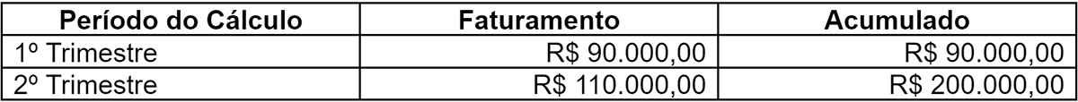- 1º Trimestre foi aplicado 16%, já para o segundo trimestre deve ser aplicado 32%;